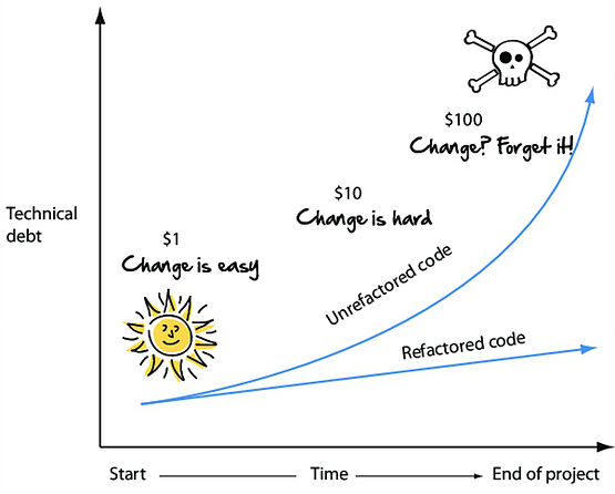 The increase in technical debt in the software will make the system more fragile. If you attempt to made any crucial fix which urgently needed, you can’t do that without breaking something. That’s the cost we will be paying as interest to the debt we were creating from the beginning time.