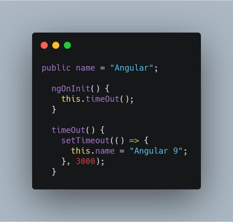 In this example, we are change variable ‘name’ value using timeOut function() after 3 seconds.